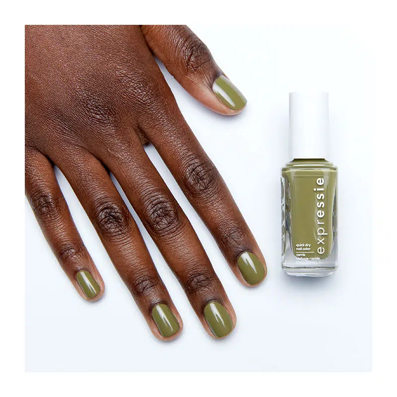 Essie βερνίκι expressie precious cargo 320 σε dusty olive green απόχρωση. Χρώμα και λάμψη με μία κίνηση – γρήγορο στέγνωμα σε 1 λεπτό! νέο πινέλο για εύκολη εφαρμογή!