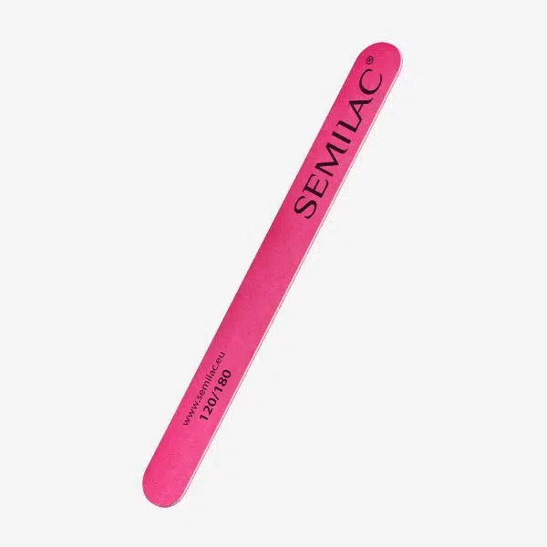 Στενή, λεπτή, ξύλινη λίμα σε ροζ χρώμα με μέτρια τραχύτητα. Κατασκευασμένη από υψηλής ποιότητας ξύλο, εξασφαλίζει την επαρκή σκληρότητα και αντοχή. Η 120/180 κοκκική διαβάθμιση είναι κατάλληλη για την προετοιμασία του φυσικού νυχιού καθώς και για χρήση σε gel και ακρυλικό.